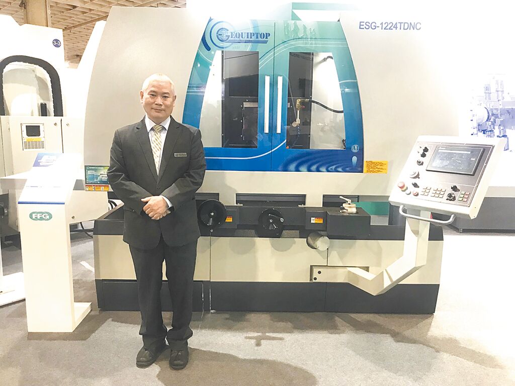 眾程科技公司總經理張耿彰及智慧型平面磨床。圖/蔡榮昌